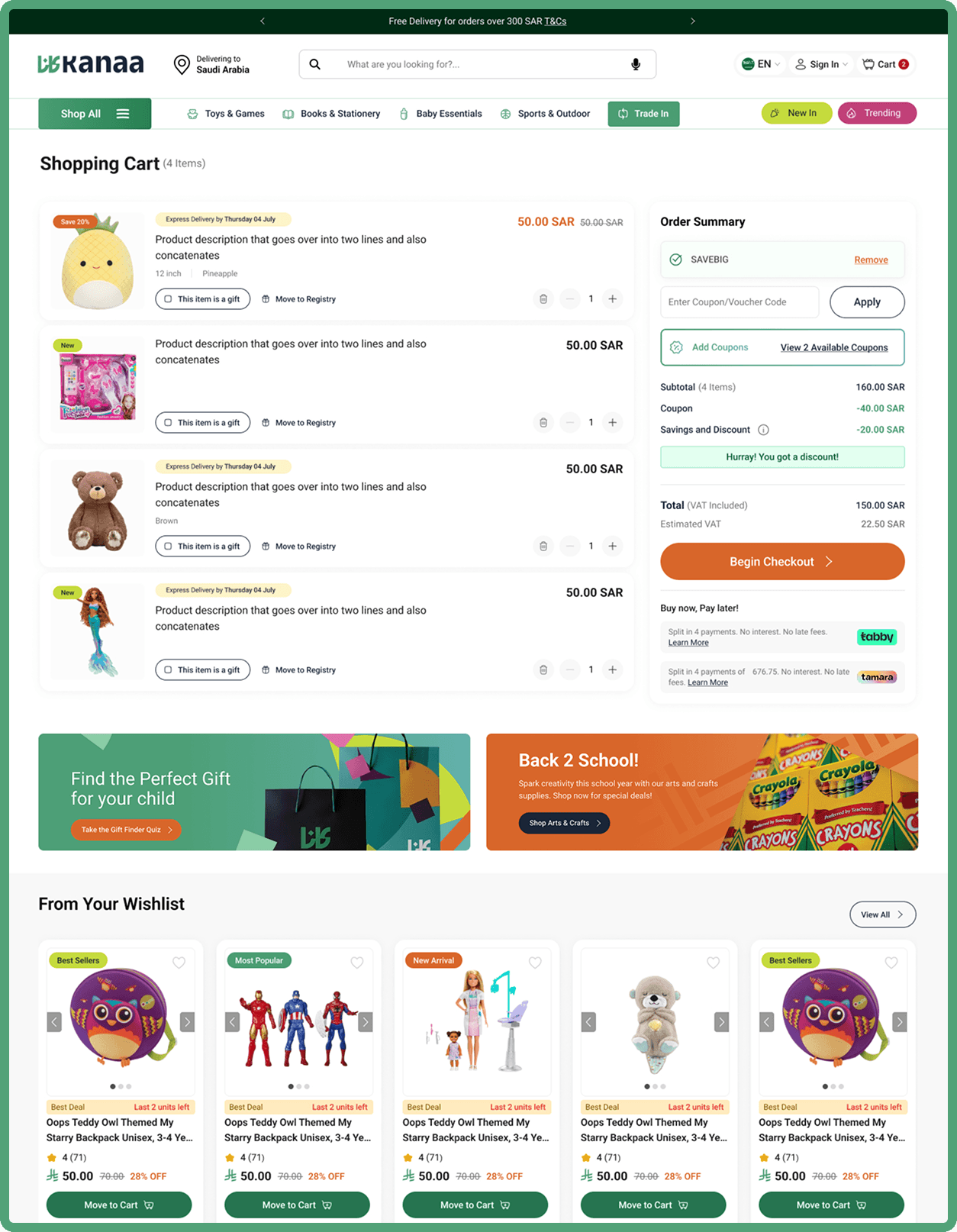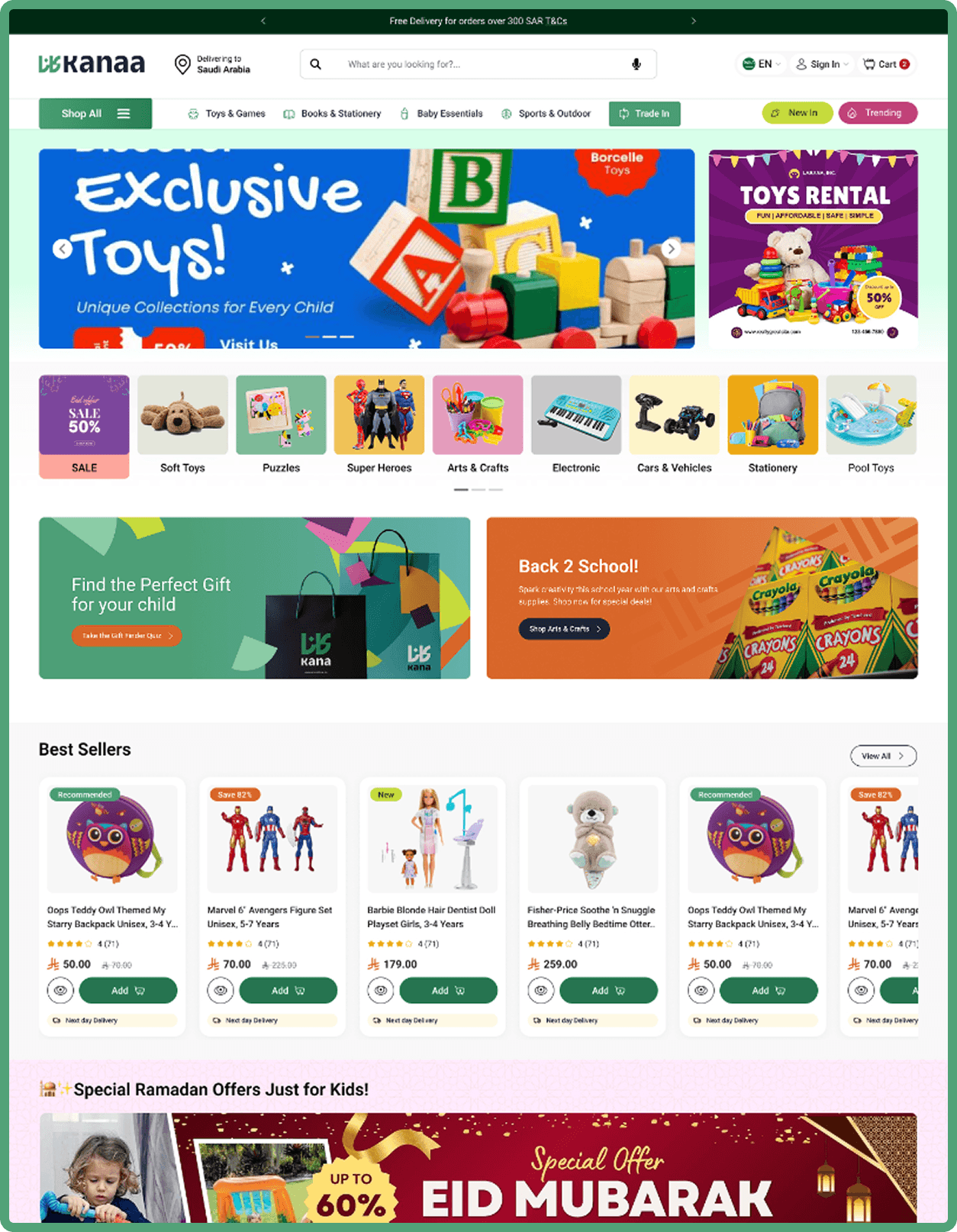 As the brand entered the competitive KSA toy market, Kanaa's leadership team faced a strategic decision at inception: deploy conventional eCommerce solutions for speed-to-market, or invest in enterprise-grade infrastructure from day one that could support ambitious multi-year growth across channels, geographies, and business models.