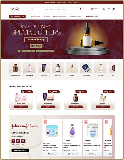 Oscar Pharmacy collaborated with Techies Infotech to transform the digital presence of Royal Pharmacy into a modern and scalable healthcare e-commerce platform.