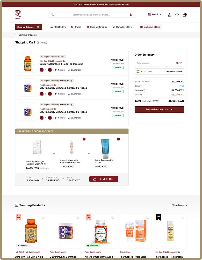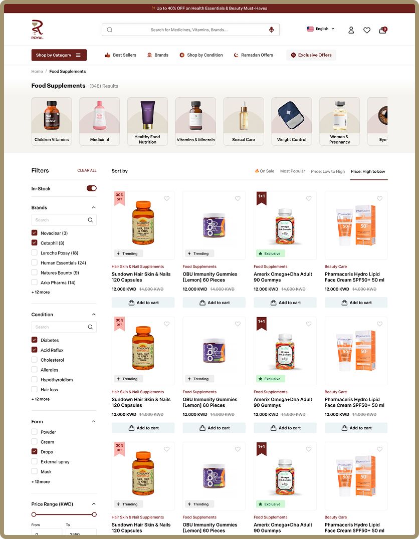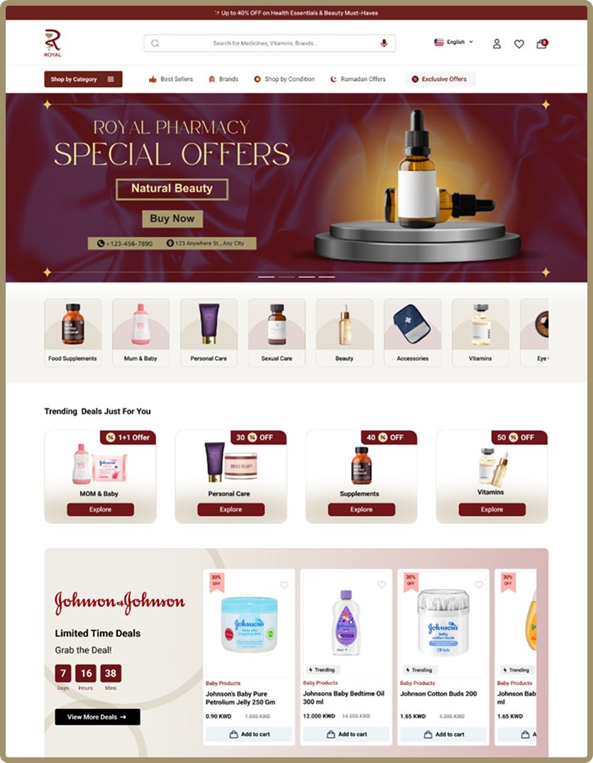 Royal Pharmacy operates in a very sensitive healthcare e-commerce space where the users demand accuracy, speed, and reassurance.